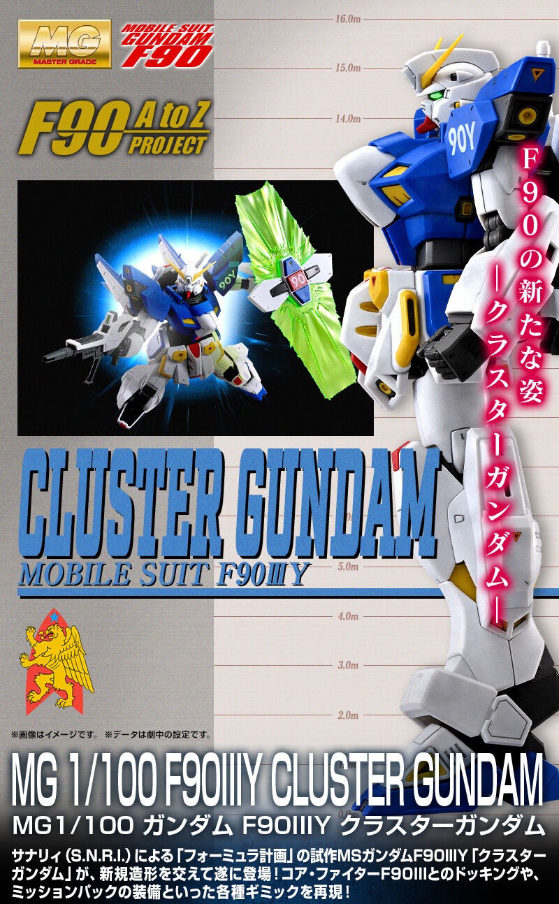 “Formula Plan” ต้นแบบของ Sanary (S.N.R.I.)… P-Bandai – MG 1/100 : F90III Y Cluster Gundam เปิดตัวในเวอร์ชั่นรีเมคที่ต่อยอดจากกันพลาที่เคยออกมาเมื่อปี 1993 โดยกิมมิคต่างๆ เช่น การเชื่อมต่อกับ Core Fighter และอุปกรณ์จากแพ็กที่ออกมาก่อนหน้าที่เล่นในซีรีส์ “Gundam F90″ … ภายใต้ชื่อโค้ดเนม “YOUNG STAR”