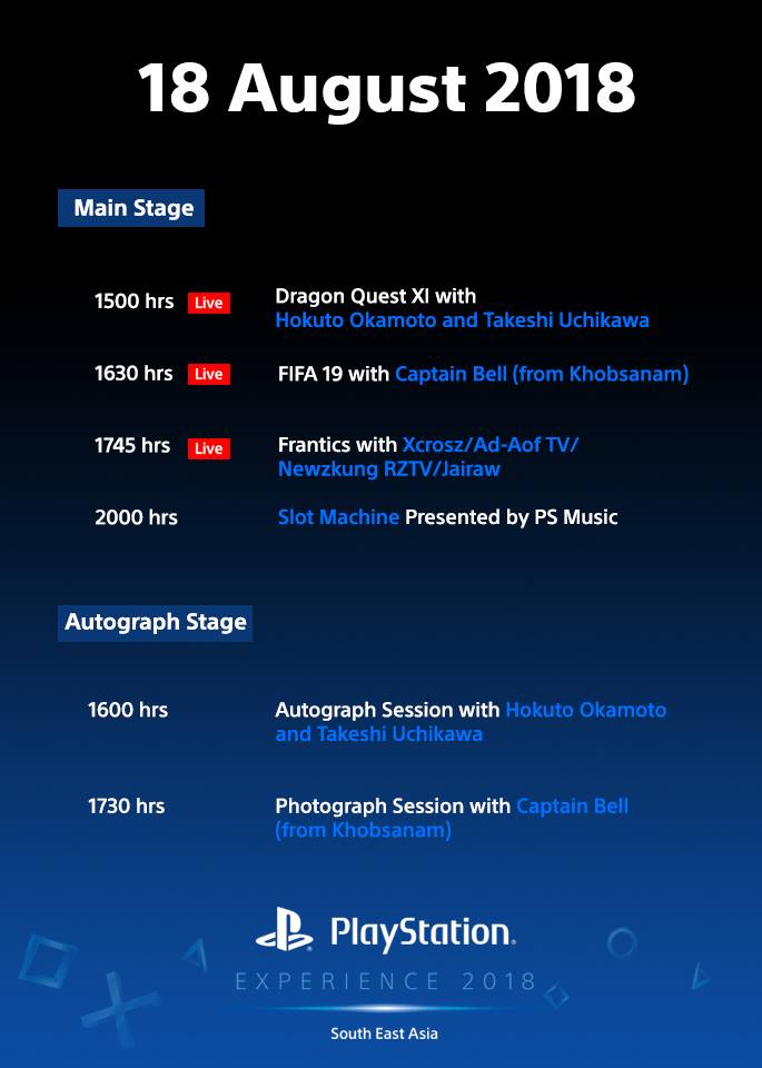 กำหนดการที่มี [Live] หมายถึง จะมีถ่ายทอดสดผ่าน Facebook Live บนหน้าแฟนเพจ PlayStation Asia ให้เพื่อนๆทางบ้านได้รับชมกันอีกด้วย