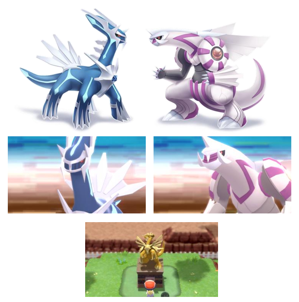ภาคนี้มีโปเกมอนในตำนาน จากหน้ากล่องอย่าง Dialga และ Palkia ซึ่งเป็นตำนานของ “ภูมิภาคซินโน” (ในภาค Arceus เรียกว่า ฮิซุย) ว่ากันว่า Dialga เป็นเจ้าแห่งเวลา ในขณะที่ Palkia เป็นเจ้าแห่งอวกาศ ทั้งสองรู้จักกันในนามเทพเจ้าของชาวซินโน โปเกมอนในตำนานทั้งสองนี้จะมีส่วนร่วมในเรื่องราวอย่างแน่นอน