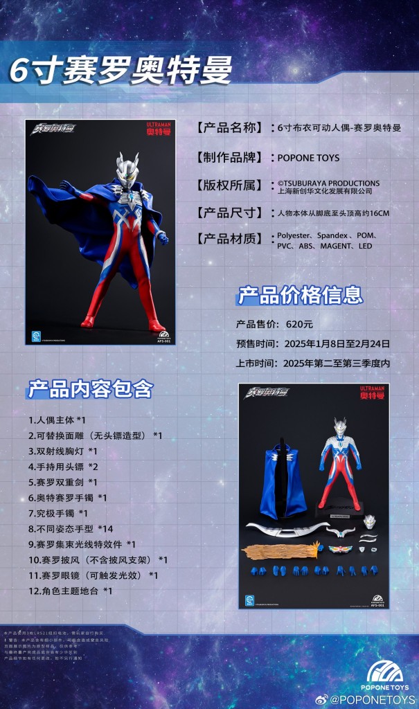 POPONETOYS : Ultraman Zero วางจำหน่าย ไตรมาสที่ 3 ของปี 2025 ราคา 620 หยวน (3xxx โดยประมาณ)