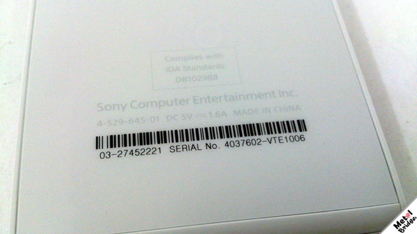 ใต้เครื่องเป็นสีขาวขุ่น มีโลโก้ Sony , PlayStation Vita ด้านล่างจะเป็น Serial No. ของตัวเครื่อง