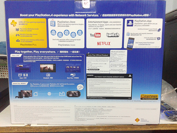 รูปหน้า / หลังของกล่องเครื่อง PS4 Pro ที่วางจำหน่ายจะให้ HDD ขนาดความจุ 1 TB ติดตั้งมาในเครื่องเลย