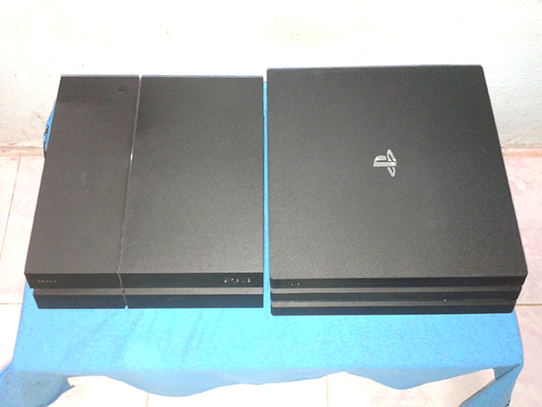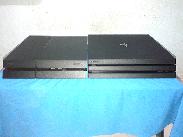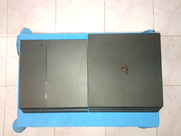 ขนาดของเครื่อง PS4 Pro ตัวนี้มีความใหญ่กว่าเครื่องรุ่นธรรมดาอย่าง PS4 1200 เล็กน้อย (อันนี้ยังไม่ได้เทียบขนาดกับเครื่อง PS4 Slim) มีความแตกต่างทางด้านรูปทรงอย่างชัดเจน PS4 Pro จะมีลักษณะทรงเป็นสามชั้น ส่วน PS4 เป็นลักษณะของสองชั้น (ตามภาพด้านบน)