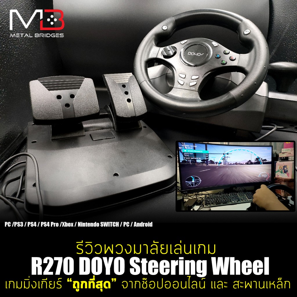 เป็นจอยพวงมาลัยราคาถูกที่สุดเท่าที่หาเจอในตลาดละ สำหรับเจ้า R270 DOYO Steering Wheel วัสดุยังดูก๊องแก๊งไปบ้าง แต่เวลาใช้งานจริงก็ไม่ค่อยมีปัญหาอะไรมากนัก อีกทั้งคันเร่ง และเบรก ยังอ้างอิงตามแรงเหยียบอีกด้วย ถือว่าดีในแง่การใช้งานครับ เป็นไปได้อย่าใส่แรงเยอะครับ พลาสติกน่าจะไม่ทนเท้าสายดริฟท์ หรือเกมเมอร์ฮาร์ดคอร์แน่ๆ อีกทั้งเสียงก๊อกแก๊กเวลาเหยียบคันเร่ง สลับ หรือย้ำ ก็หนวกหูดีใช้ได้ครับ