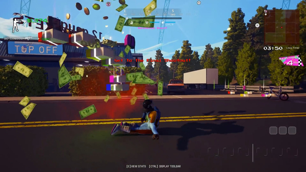 ตัวเกมจะไม่ค่อยเน้นความสมจริงอะไรมาก เน้นเอามันส์สนุกๆมากกว่า อย่างเช่นการโดดลงพื้น ถ้าในเกมอื่นต้องกระตุกร่มชูชีพ แต่เกมนี้พุ่งลงมาตรงๆราวกับซูเปอร์ฮีโร่ และเกมนี้จะไม่มีปืนวางเกลื่อนกลาดตามตึก แต่จะให้ผู้เล่นทำการ “สะสมเงิน” ที่ได้จากตู้ ช่องเก็บเงิน (พูดง่ายๆว่า ปล้น) หรือจะได้จากการยิงคู่อริ เมื่อได้เงินแล้วก็ต้องวิ่งหาตู้กดปืน ซึ่งปืน เสื้อเกราะก็จะมีเลเวล และราคาแตกต่างกันไป…แน่นอนว่าถ้าเราตายก็จบเกม เหมือนเกมBattle Royaleทั่วๆไปนี่ละครับ
