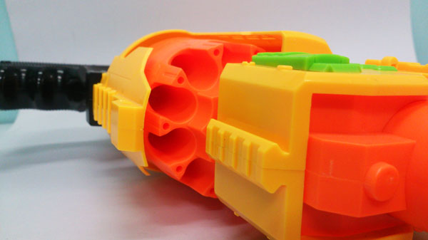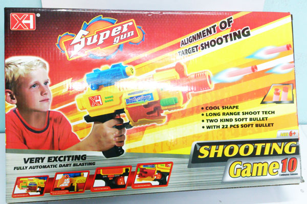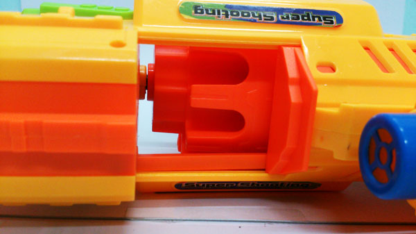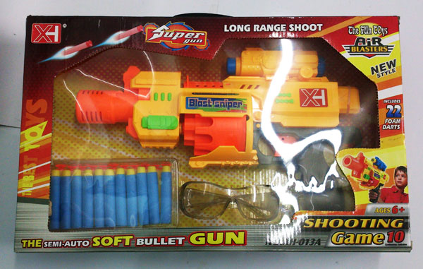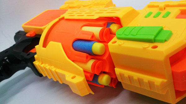 เจ้าสิ่งนี้ คือ ปืนยิงกระสุนโฟม แบบไฟฟ้ากึ่งอัตโนมัติ นั่นเอง ซึ่งเจ้าปืนกระบอกนี้ เป็นของเล่นเด็กน้อย ที่เหมาะสำหรับเด็กอายุ 6 ปีขึ้นไปนะครับ