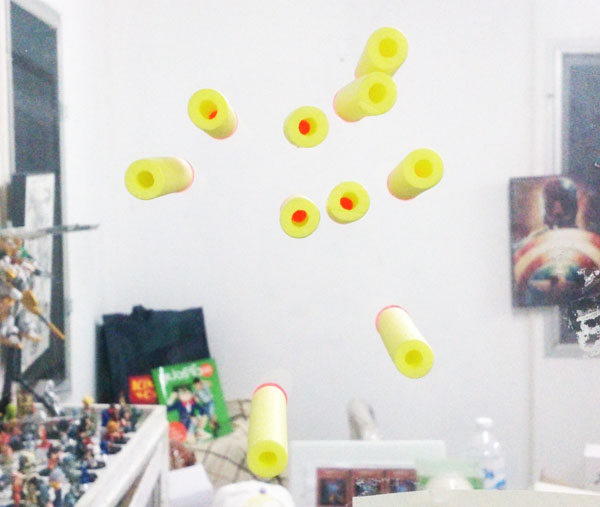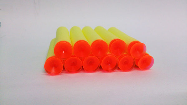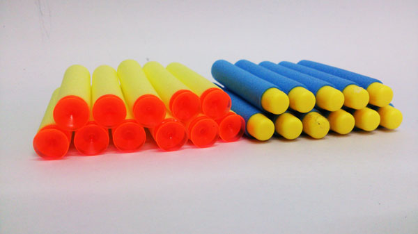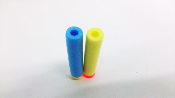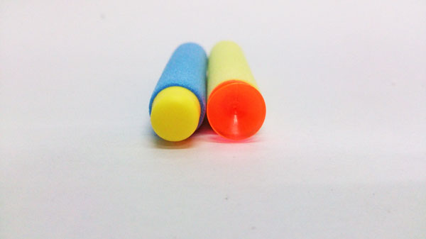 กระสุนทั้ง 2 แบบ ตัวจะเป็นโฟมนิ่ม ๆ แต่แตกต่างกันที่หัวของกระสุน