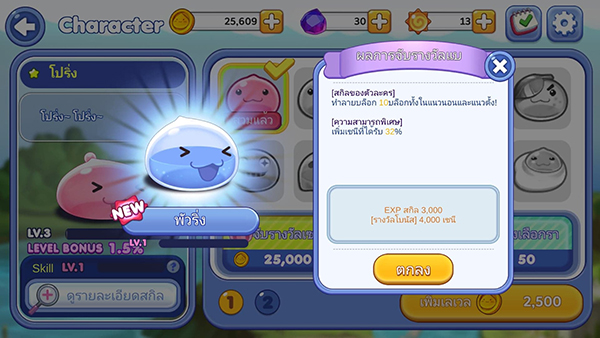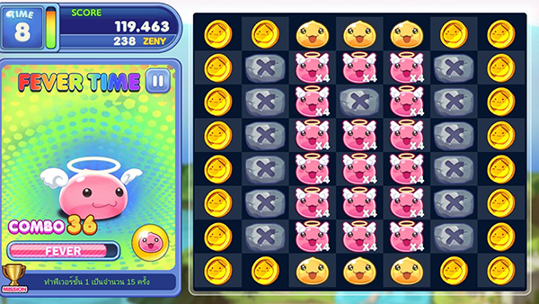 มี Poring ให้สะสมหลากหลายชนิด – ใครที่เคยผ่าน RO มา ต้องเคยเห็น Poring มาไม่ต่ำกว่า 4,5 แบบแน่นอน มาเผชิญหน้ากับโปริ่งหลากหลายแบบหลายสีอีกครั้งได้ในเกมนี้ คุณสามารถอัพเลเวลของโปริ่งเพื่อให้มันทำคะแนนได้สูงขึ้นได้ด้วย โปริ่งแต่ละชนิดแต่ละแบบ ก็จะมีสกิลติดตัวต่างกันไป เช่น โปริ่งสีฟ้าจะมีความสามารถทำลายบล็อค 10 บล็อคทั้งในแนวนอนและแนวตั้ง แถมยังช่วยเพิ่ม Zeni (เงิน) ที่ได้รับอีกถึง 32% แล้วเราจะได้ Poring เพิ่มมาจากไหน ? “สุ่มเอา” จากกาชาปองอีกแล้วนั่นเอง ซึ่งก็มีให้เลือกทั้งแบบใช้เงินในเกมสุ่ม และใช้เพชรสุ่ม ครับผม หรืออีกทางก็คือ “เลือกซื้อได้เลย” โดยใช้เพชรที่มากขึ้นครับ