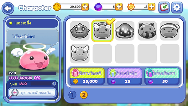 มาต่อกันในส่วนของ “ร้านค้า และ กาชาปอง” อย่างที่ได้กล่าวไปแล้วในช่วงต้นว่า เราสามารถปลดล็อกโปริ่งชนิดต่างๆได้โดยใช้เงินก็ได้ ใช้เพชรก็ได้ แถมจะซื้อเลย หรือสุ่ม ก็สามารถเลือกได้ตามทรัพยากรที่มีอีกเช่นกัน หากผู้เล่นเลือกใช้ 25000 เซนี ก็จะเป็นการสุ่มกาชาปองเลยครับ สุ่มโปริ่งได้ 1 ไทป์ออกมา โดยในตอนนี้ก็มีโปริ่งอยู่ทั้งหมด 16 แบบเท่านั้นเอง การเลือกใช้อัญมณี 25 เม็ด ก็จะเป็นการสุ่มโปริ่ง 1 แบบเหมือนกันการใช้ 25000 เซนีนี่หละครับ