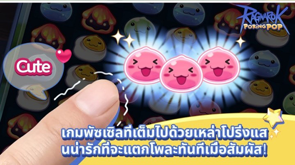 หวนคืนความทรงจำตีโปริ่งแตกไปด้วยกัน – เกม Poring Pop จะพาแฟนๆ RO ย้อนกลับไปสัมผัสความรู้สึกครั้ง “ตีแรค” อีกครั้ง Poring pop ก็เป็นเกม Puzzle ที่มีกฏการเล่นทั่วไปเข้าใจง่าย แค่เลื่อนจับคู่ให้โปริ่งที่หน้าตาเหมือนกันอยู่ติดกัน 2 ตัวขึ้นไปก็จะ “แตกโพละ”ทันที ทำให้นึกถึงสมัยเอาดาบฟาดแตกโพละเลย