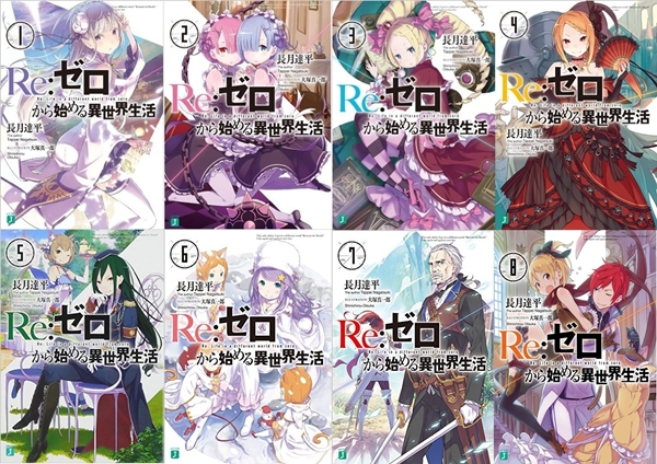 ภาพปกนิยาย “Re : Zero Kara Hajimeru Isekai Seikatsu” ที่แต่งโดย อ. Tappei Nagatsuki วาดภาพประกอบโดย อ. Shinichirou Otsuka