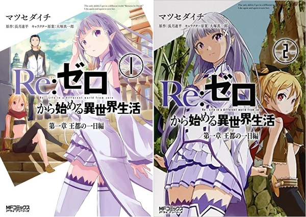 นอกจากนี้ยังมีผลงานในรูปแบบมังงะที่วาดโดยนักเขียนสองท่าน  คือ อ. Daichi Matsuseในผลงานชื่อ “Re:Zero kara Hajimeru Isekai Seikatsu: Daiisshō – Ōto no Ichinichi-hen”(Re:ゼロから始める異世界生活 第一章 王都の一日編) ตีพิมพ์ลงในนิตยาสารรายเดือน  Monthly Comic Alive ในเครือของ Kadokawaเมื่อเดือนสิงหาคม ปี 2014 จนถึงเดือนเมษายนปี 2015  ออกวางจำหน่ายครั้งแรกเมื่อวันที่ 23 ตุลาคม ปี 2014 ในเล่มที่ 1 และ 23 มีนาคม 2015 ในเล่มที่ 2