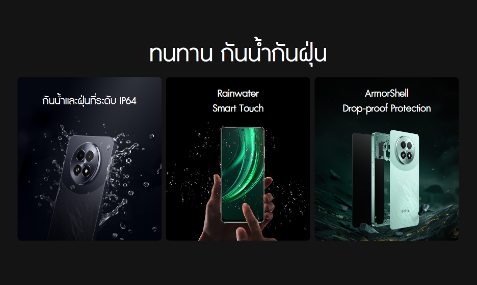 นอกจากนี้ realme 13 5G ยังมีคุณสมบัติกันน้ำกันฝุ่นที่ IP64 สามารถใช้งานได้ในทุกสภาวะ ภายใต้การออกแบบตัวเครื่องที่สวยงาม Victory Speed Design มอบภาพลักษณ์แห่งชัยชนะในทุกมุมมอง