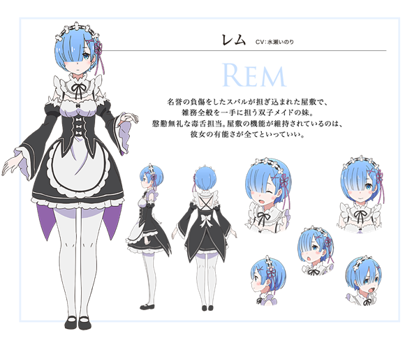 สาวน้อยผมฟ้าผู้น้องที่เป็นฝาแฝดกับรัม คอยทำงานเป็นแม่บ้านดูแลปราสาทให้กับรอสเวลเช่นกัน มีนิสัยและความคิดความอ่านไม่ต่างจากฝาแฝดคนพี่ แต่เธอจะเก่งด้านงานบ้านงานเรือนมากกว่า เธอให้ความเคารพนับถือในตัวของพี่สาวเอามากๆ