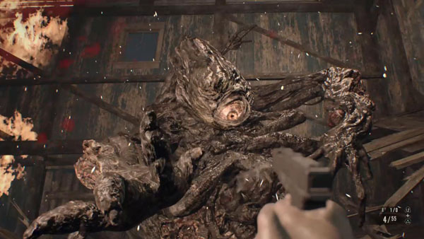 เมื่อไร้ซึ่งร่างกายภาพ เอเวอลีนจึงได้ทำการหลอมรวมตัวเองเข้ากับเชื้อไวรัสที่แพร่กระจายในบ้านทั้งหลัง จนกลายเป็น “B.O.W.ขนาดยักษ์” !! (ให้เข้าใจง่ายๆเลยก็ บ้านทั้งหลังนี่ละ คือบอสใหญ่ของภาคนี้)