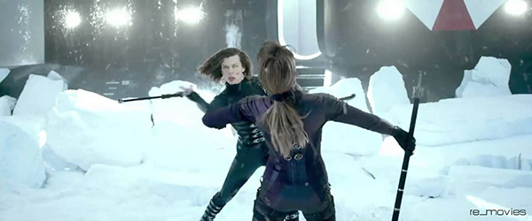 ทว่ายังไม่ทันหนีพ้น ก็ถูกเรือดำน้ำขัดขวางก่อนจะพบว่า จิล และ เรน ในร่างโคลนของอัมเบรล่า ได้จับกุม เอด้า หว่องเป็นตัวประกัน แล้ว เรน ตัดสินใจฉีดไวรัส Las Plagas เพิ่มขีดความสามารถของตัวเอง ก่อนจะเปิดศึกตัดสิน ซึ่งอลิซสามารถดึงเครื่องควบคุมจากจิลได้สำเร็จ แล้วเมื่อจิลได้สติจึงโยนปืนให้ อลิซ ยิงตรงพื้นน้ำแข็งส่งร่างโคลน เรน ไปเป็นอาหารให้พวกซอมบี้ในที่สุด