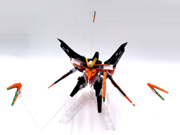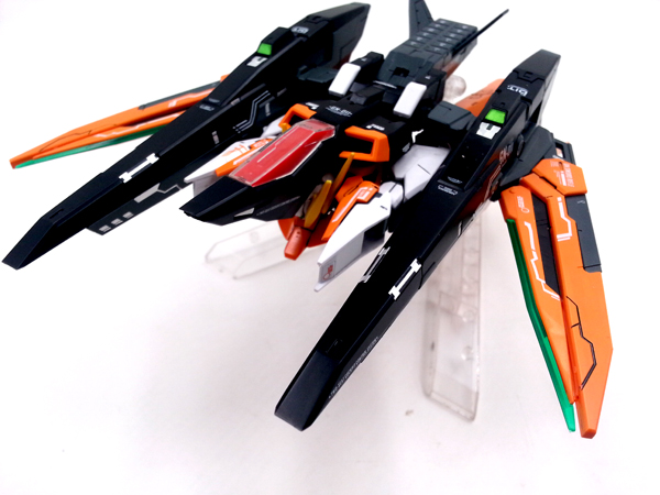 การเปลี่ยนร่างเป็น MA Mode ทำได้ไม่ยาก แต่น่าหงุดหงิด อย่างที่บอกครับ ช่วงขาที่เพิ่มเข้ามา ทำให้น้ำหนักเยอะขึ้น จึงเป็นชิ้นส่วนที่หลุดง่ายมาก พอมาเป็นยานรบ ก็พาลจะห้อยลงมา (เหมือนร่าง Gerwalk ในอนิเมมาครอส) อีกทั้งดีไซน์ช่วงหัวเข่าที่เพิ่มเข้ามา ก็เป็นตัวกีดขวางจุดขยับเปลี่ยนร่างพอสมควร แนะนำว่าให้ถอดออกก่อน และค่อยประกอบกลับเข้าไปครับ