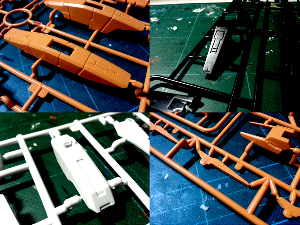 จุดสังเกตุของส่วนขา จะเห็นได้ว่า มีชิ้นส่วนเดิมของฮารูทจากบันได กับชิ้นส่วนขาท่อนล่างที่หล่อขึ้นมาใหม่เพื่อรองรับกับชิ้นส่วนบูสเตอร์ และช่วงหัวเข่าที่เป็นช่องเก็บ GN Scissor ก็เป็นชิ้นส่วนที่ทำขึ้นมาใหม่