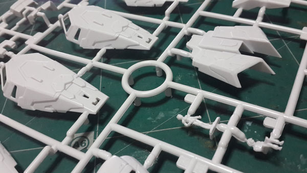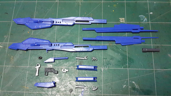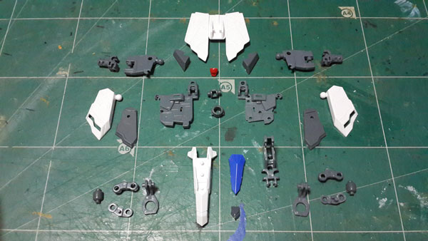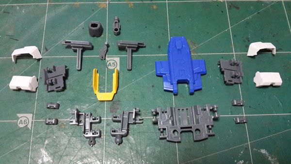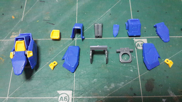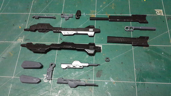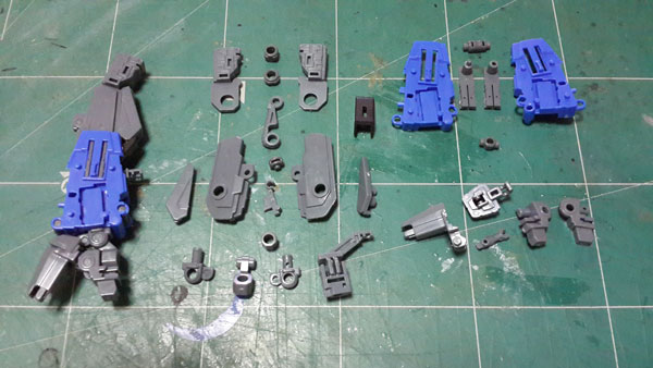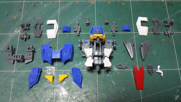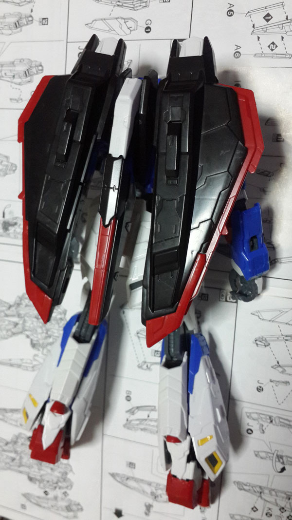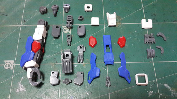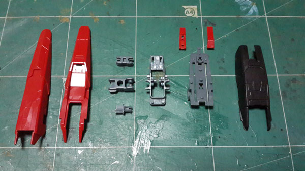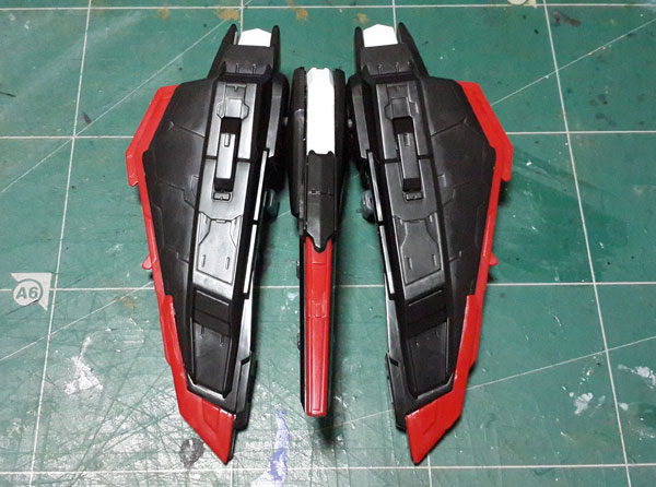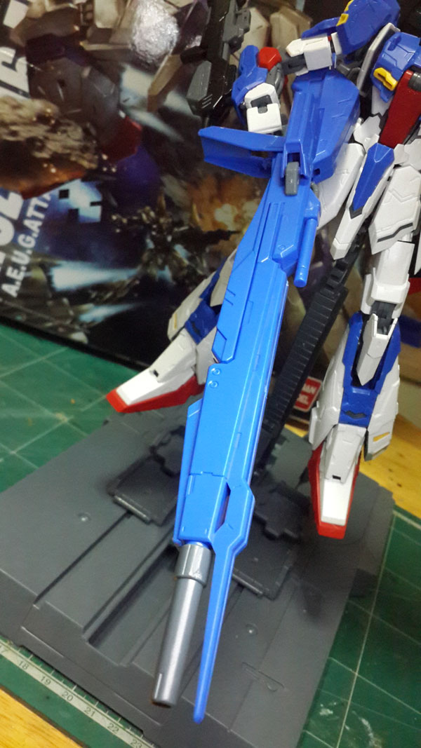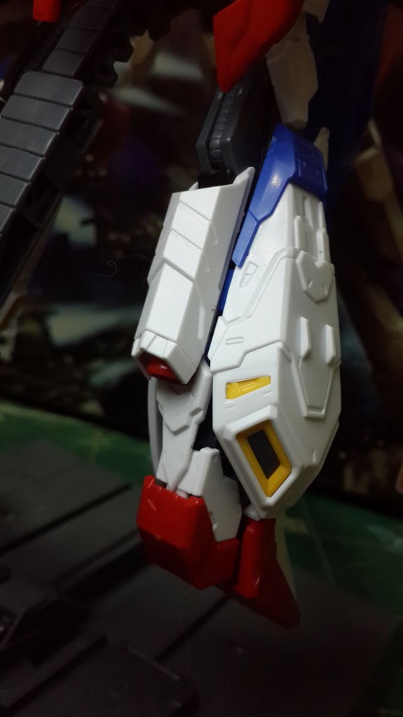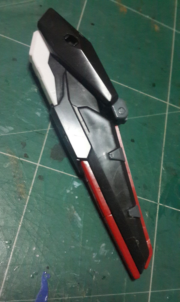 ต่อได้ไหลลื่นไม่มีปัญหา ประกบลงเป๊ะๆ ไม่ต้องเหลา ตรงส่วนไหลมีชิ้นส่วนที่ทำเพิ่มเติมจากของ บันไดตรงไอพ่นแบบนี้มันก็สวยดีนะ และอีกจุดที่แตกต่างคือท่อตรงแขนที่ของบันได้จเป็นท่อท่อนๆ แต่ตัวนี้เป็นท่อเรียบเลย และบานเปิอปืมมิสไซด์ตรงแขนหายไป