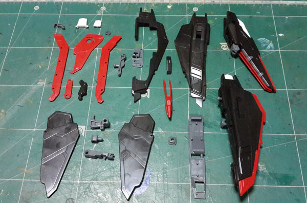 แบคแพคตรงกลางทำมาได้ล้ำไปอีกขั้นมีชิ้นส่วนเล็กๆเพิมเติมเข้ามาได้ลงตัวสวยดี ส่วนปีก2ข้างกลไกทำมาเหมือนของบันไดเพิ่มลวดลายเยอะแยะเหมือนดิม ต่อง่ายไหลลื่น โล่และอาวุธปืนก็เช่นกัน