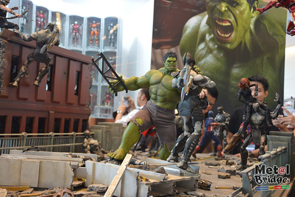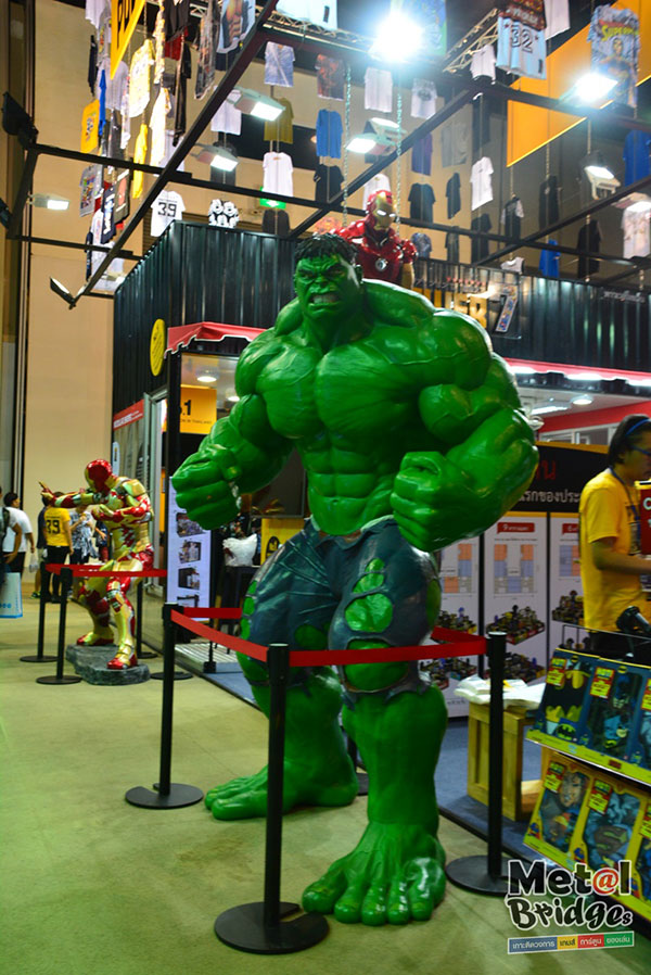 โดยสำหรับสิ่งแรกที่ผู้เข้าชมงานจะได้เห็นกันแบบชัดถนัดตา ก็คงจะหนีไม่พ้นเจ้าฮัลค์บัสเตอร์ (Hulkbuster) ขนาดยักษ์ จาก The Avenger 2 : Age of Ultron ที่กำกำปั้นอวดความแข็งแรงต้อนรับผู้มาเยือนทุกท่าน ในบูทของ Hot Toys ซึ่งนอกจากเจ้าฮัลค์บัสเอต์แล้ว ก็ยังมีการจัดจำลองมินิฉากการต่อสู้ขนาดย่อยของเหล่าซูเปอร์ฮีโร่ในเรื่องเดียวกันของภาคก่อน มาจัดแสดงให้ผู้สนใจถ่ายรูปและอินไปกับพวกเค้าอีกด้วย