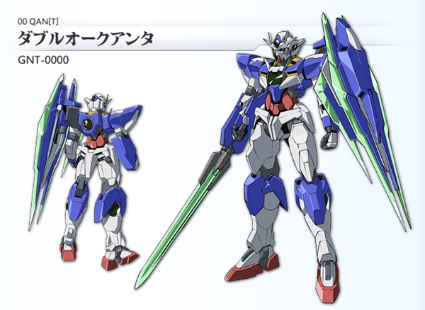 โมบิลสูท 1 ใน 4 กำลังรบหลักของฝ่ายเซเลสเชี่ยล บีอิ้งในภาคหนังโรง ที่ตัวเครื่องได้รับการพัฒนาเพื่อให้ผู้ที่เป็นอินโนเวเตอร์ โดยเฉพาะ มีอาวุธเป็น GN Full Saber Pack ดาบขนาดใหญ่ที่สามารถถอดเป็นดาบขนาดเล็กได้อีก 7 เล่ม ซึ่งยังคงแนวคิดตามแบบ“Seven Sword” ดั้งเดิมอยู่ นอกจากนี้ยังติดตั้งเตาแสงสุริยะ GN-Drive ที่เพิ่มกำลังได้สูงกว่ากันดั้มทุกๆ รุ่นที่มีมา จนสามารถสร้างและกระจายคลื่นควอนตัมได้กว้างมากขึ้น ทั้งยังมีความสามารถในการเคลื่อนที่ๆ เร็วกว่าแสงจนสามารถก้าวผ่านมิติของห้วงเวลาได้ ซึ่งจุดประสงค์หลักของ 00 Qan[T] คือ “การเชื่อมต่อความคิดของสิ่งมีชีวิตให้เข้าหากัน เพื่อการพูดคุยและเปิดรับความเข้าใจกัน” ตามเจตนารมณ์ของ อิโอเรีย เชนเบิร์ก อย่างแท้จริง