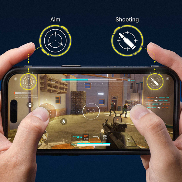 โดย RhinoBuff อุปกรณ์เสริมความแม่นยำ FPS ได้รับการออกแบบมาเป็นพิเศษสำหรับเกมเมอร์ สาย FPS บนมือถือ ประกอบด้วยเคสกันกระแทกที่มาพร้อมเทคโนโลยีไฟฟ้าที่ได้รับการจดสิทธิบัตร ปุ่มกดเสริมด้านข้างเคสที่ใช้เทคโนโลยีเอกสิทธิเฉพาะ พร้อมกับฟิล์มกันรอยที่ไหลลื่น ติดตั้งง่าย ช่วยให้ควบคุมเกมได้อย่างสบายมือยิ่งขึ้น ไม่ต้องใช้อุปกรณ์เสริมเพิ่มเติมหรือถอดประกอบใดๆ สามารถเล่นได้ทุกที่ทุกเวลา