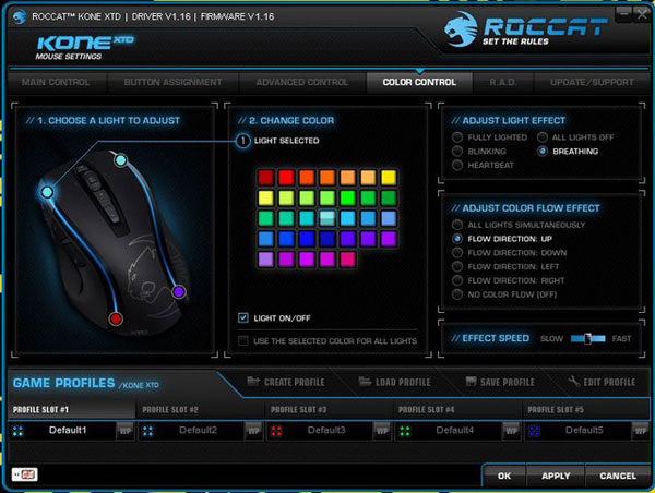 เจ้า Roccat Kone XTD ตัวนี้ สามารถปรับแสงไฟในตัวได้ 4 จุด ตัวไฟเป็นแบบ LED และยังมีระบบ TDCU ที่เป็นระบบเซ็นเซอร์ที่จะทำให้เม้าส์รู้จักกับแผ่นรองเม้าส์นั่นเอง มาดูที่ลูกเล่นย่อ ๆ ของ Kone XTD ตัวนี้กันบ้าง