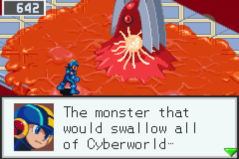 เมื่ออุปกรณ์ที่เชื่อมต่อกับ Alpha ทั้งหมดถูกฟอร์เต้ทำลายลง จึงทำให้Alpha ที่ยังเต็มไปด้วยข้อบกพร่องในระบบ เกิดอาละวาดจากสัญชาตญาณที่มี จนทำให้มันพุ่งเข้าไปเชื่อมต่อกับอุปกรณ์ทั้งหมดและทำการดูดกลืนเหล่า NetNavi รวมถึงโปรแกรมอื่นๆทั้งหมดเข้าไปจนกระทั่ง 1สัปดาห์ต่อมา Cyberworld ก็ถูกมันดูดกลืนเข้าไปจนหมด