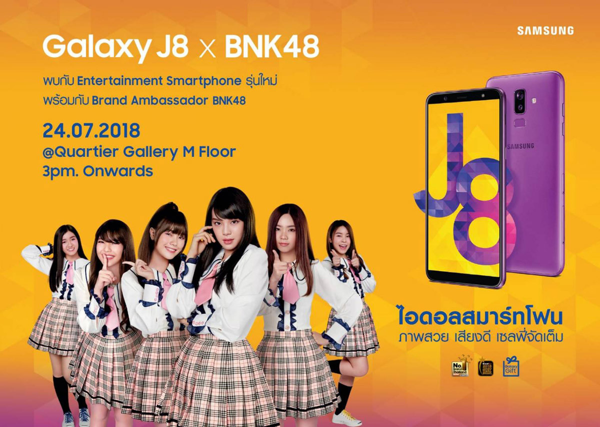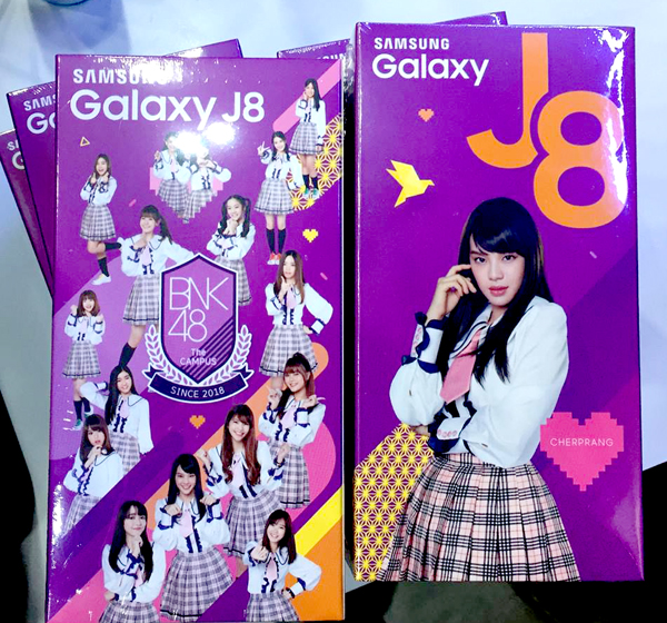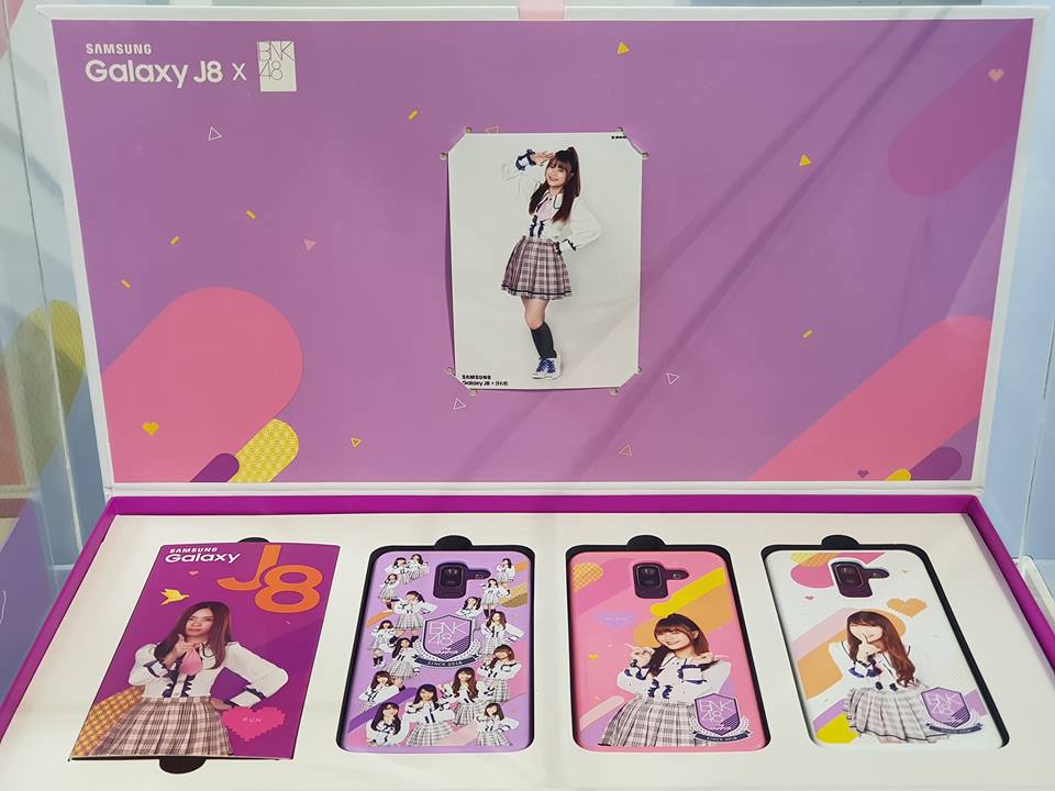 โดยโทรศัพท์รุ่น Samsung Galaxy J8 X BNK48 เป็นเครื่องแคมเปญพิเศษ ที่ทางซัมซุงร่วมกับ BNK48 Office จัดแคมเปญบ๊อกซ์เซตพิเศษขึ้น โดยเบื้องต้นมีการประกาศว่าภายในกล่องจะบรรจุ Samsung Galaxy J8 / เคสลายพิเศษ 3 ชิ้น และ รูปสุ่มเมมเบอร์ (ชุดแสดงโคเอง เธียร์เตอร์) ในราคา 12900 บาท และมีแอพลิเคชั่น Exclusive เสียงปลุกโดยเสียงจากปาก Member / มี wallpaper ทั้งเดี่ยวและกลุ่ม **มีแค่ 20,000 เครื่องเท่านั้น