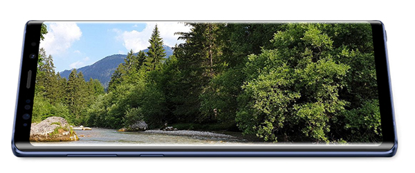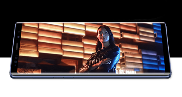 ตัวเครื่องมีหน้าจอขนาด 6.4 นิ้ว เพลิดเพลินไปกับมุมมองที่เต็มตา และเสริมความคมชัดด้วยความละเอียด Quad HD+ 2960 x 1440 พิกเซล  Super AMOLED 24-bit (16 ล้านสี) 516 ppi  รองรับการวาดเขียนที่ต้องใช้พื้นที่มากขึ้น พร้อมกับเซ็นเซอร์สแกนม่านตาด้านบนถูกซ่อนไว้เพื่อไม่ให้รบกวนสายตาระหว่างการใช้งาน อีกทั้ง Galaxy Note9 สามารถปรับความคมชัดให้พอดีกับแสง ไม่ว่าจะเป็นในร่ม หรือกลางแดด
