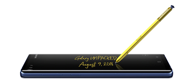 ปากกาอัจฉริยะ S Pen จัดว่าเป็นไอเทมเชิดหน้าชูตาของจักรวาลโน๊ตมาโดยตลอด ด้วยการรองรับแรงกดที่สามารถให้ลายเส้นที่ใกล้เคียงกับการใช้ปากกาหรือดินสอจริงๆ โดยใน Note 9 ตัวนี้ จะรองรับแรงกดได้มากถึง 4096 ระดับ อีกทั้งยังสามารถใช้สั่งการสไลด์โชว์ โดยไม่ต้องใช้โทรศัพท์ เมื่อเชื่อมต่อกับ DEX อุปกรร์เชื่อมต่อจอ มอนิเตอร์ หรือโปรเจคเตอร์ รองรับการสั่งการแอพลิเคชั่นจากระยะไกล (10 เมตร) หรือใช้กดลั่นชัตเตอร์เพื่อการถ่ายภาพ ทั้งกล้องหลัง และเซลฟี่