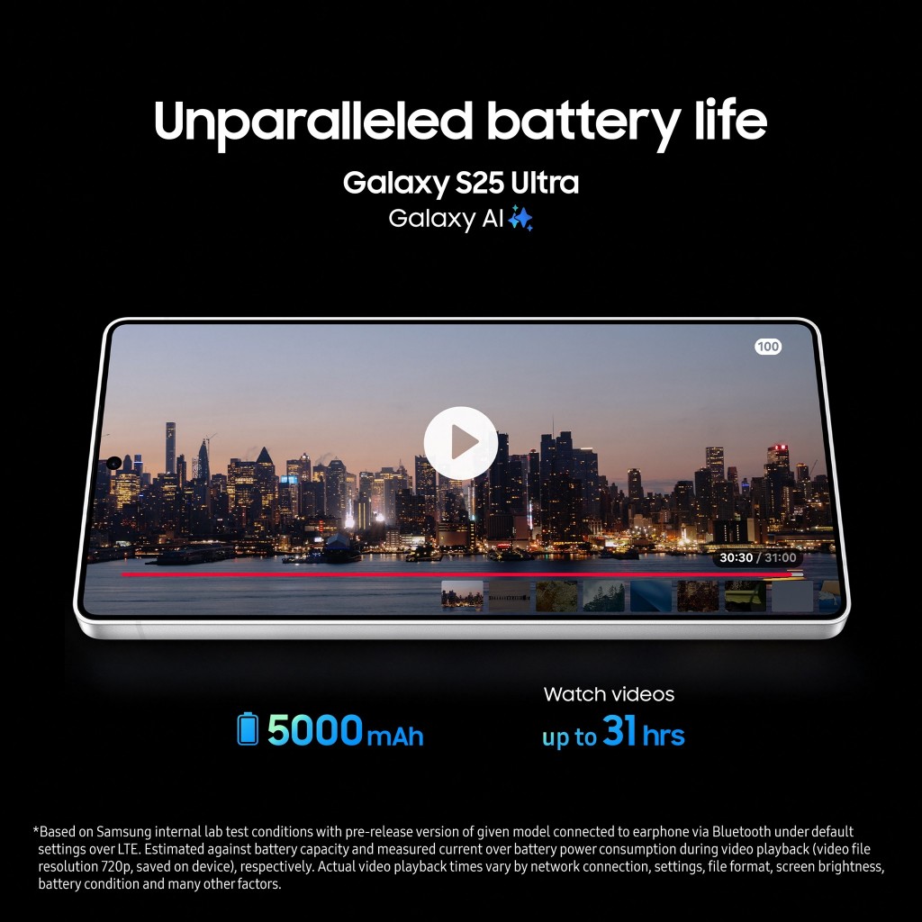 นอกจากนี้ แบตเตอรี่ของอุปกรณ์ใน Galaxy S25 Series ทุกเครื่อง ใช้โคบอลต์รีไซเคิล ซึ่งเป็นสมาร์ทโฟนรุ่นแรกของ Galaxy ที่ใช้แบตเตอรี่ผลิตจากโคบอลต์รีไซเคิลที่มาจากอุปกรณ์ Galaxy รุ่นเก่า หรือแบตเตอรี่ที่ถูกทิ้งระหว่างกระบวนการผลิต โดยซัมซุงได้ทำงานร่วมกับพันธมิตรที่มีแนวคิดเดียวกันในหลายขั้นตอน ตั้งแต่การสกัดโคบอลต์จากแบตเตอรี่ที่ใช้งานแล้ว ไปจนถึงการนำโคบอลต์ที่รีไซเคิลกลับมาใช้ใหม่สำหรับแบตเตอรี่ของ Galaxy S25 เพื่อลดผลกระทบต่อสิ่งแวดล้อมและสร้างอนาคตที่ยั่งยืนยิ่งขึ้น