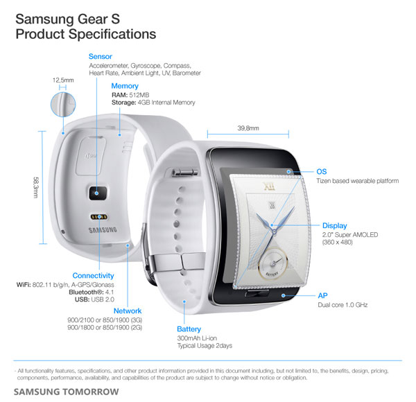 Samsung Gear S เป็นอีกขั้นของนาฬิกาอัจฉริยะที่สามารถใช้งานแยกจากสมาร์ทโฟนได้มากกว่าสมาร์ทวอชรุ่นอื่น ๆ โดยสามารถใส่ซิมเพื่อโทรออก รับสาย และยังเชื่อมต่ออินเตอร์เน็ต 3G เพื่อใช้งานด้านต่าง ๆ ได้โดยไม่ต้องพึ่งสมาร์ทโฟนมากเกินไป และด้วยหน้าจอโค้งทำให้มีพื้นที่แสดงผลมากขึ้น กันเหงื่อกันฝุ่น สามารถใส่แล้วออกวิ่งได้ทันที ไม่ต้องพกสมาร์ทโฟนให้ยุ่งยาก โดยรวมแล้วเจ้านาฬิกาอัจฉริยะ Samsung Gear S นี้จะช่วยอำนวยความสะดวกให้เรามากขึ้นนั่นเอง