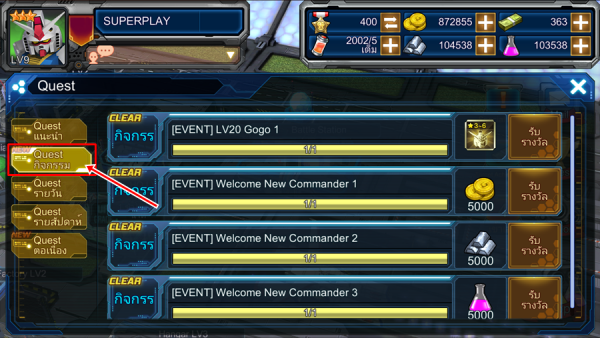 - หลังจากคลิกเข้ามาที่ Quest Special Event แล้ว คอมมานเดอร์จะเจอกับหน้าต่างดังภาพด้านล่าง เพื่อให้เข้ามากดรับรางวัล!