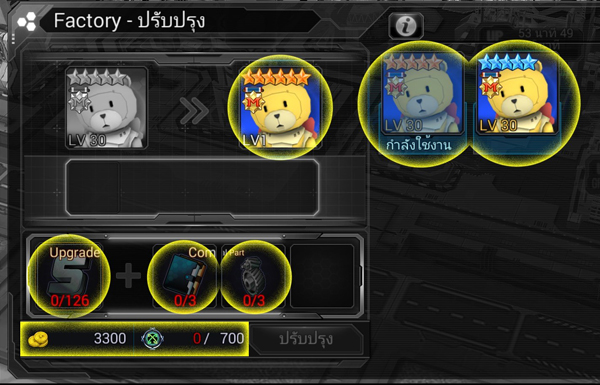ระบบที่ใช้อัพเกรดระดับ (ดาว) ของ MS ให้สูงขึ้นโดยการใช้ชิ้นส่วนที่กำหนดเพื่อพัฒนา MS โดยเข้าไปที่เมนู “ปรับปรุง” ใน Factory