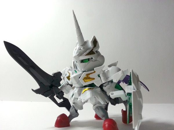 Knight Unicorn Gundam ที่ได้ทำการเปิดเกราะ และปลดปล่อยพลังที่ Sunborn ผนึกเอาไว้ใช้ในยามจำเป็น จากภาค “SD Gundam Gaiden: Suda Doaka Knight Saga”