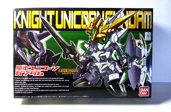 SD Knight Unicorn Gundam จะประกอบไปด้วยแผงชิ้นส่วน 8 แผง และสติ๊กเกอร์ 1 แผ่น และด้วยความที่สินค้าผลิตในไลน์ SD การแยกสีอาจจะทำได้ไม่ดีนัก แต่ชดเชยด้วยการประกอบที่สามารถทำได้ง่าย เหมาะสำหรับเด็กเล็ก และ ผู้ที่สนใจเริ่มประกอบกันพลาเป็นครั้งแรก