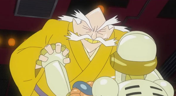หุ่นยนตร์ในร่างชายแก่ มีเอกลักษณ์ที่ฟันเหลือง หัวโบราณที่มีความเชื่อว่าผู้ชายต้องอยู่เหนือผู้หญิง