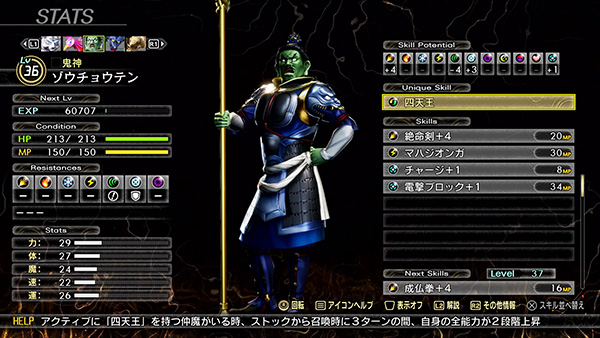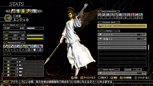 ปีศาจทุกตัวมีทักษะติดมา ซึ่งเป็นสิ่งที่ทำให้คุณได้เปรียบในการต่อสู้ บ้างก็อาจมีบัฟเสริมการโจมตี และแม้กระทั่งช่วยเหลือคุณเมื่อต้องเจรจากับปีศาจ! โดยสิ่งเหล่านี้จะเพิ่มกลยุทธ์ในการสร้างปาร์ตี้ของคุณด้วย