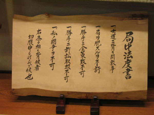 หนังสือลายลักษณ์อักษรที่เป็นกฎเหล็กทังห้าข้อของกลุ่มชินเซ็นงุมิ
