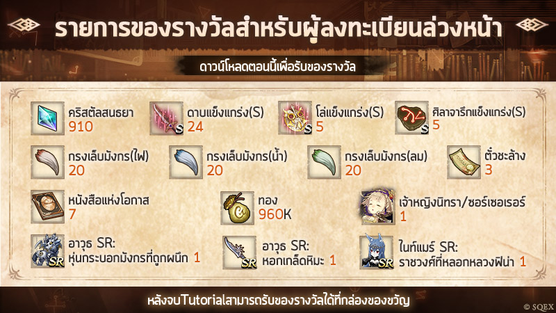 ผู้พัฒนาจึงทำการจัดกิจกรรมเพื่อขอบคุณทุกๆ คนโดยการมอบไอเท็มถึง 14 ชิ้นเพื่อเป็นรางวัลตอบแทน, คริสตัลสนธยา910ชิ้น และ กรีมัวร์(กาชา) 11 ครั้ง จำนวน 3 รอบ สามารถรับของรางวัลได้ทางกล่องของขวัญหลังจบTutorial