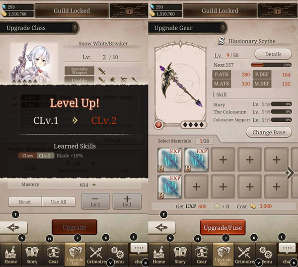 5.Upgrade – Sell - ระบบอัพเกรดเหล่าตัวละคร และอาวุธสวมใส่ต่างๆ