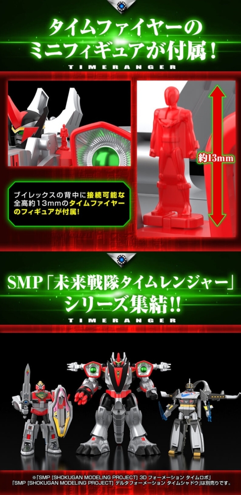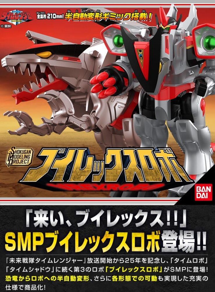 ทาง Bandai Candy Online Shop ได้ประกาศเปิดตัวสินค้าใหม่สุดพรีเมียมในไลน์ SMP [SHOKUGAN MODELING PROJECT] เพื่อเฉลิมฉลองครบรอบ 25 ปี ของซีรีส์ ขบวนการอนาคตไทม์เรนเจอร์ (Mirai Sentai Timeranger) กับหุ่นรบไดโนเสาร์ขนาดยักษ์ V-Rex Robo ที่แฟนๆ รอคอยกันมานาน โดยสินค้าตัวนี้ถูกผลิตออกมาในรูปแบบ Premium Bandai Exclusive ที่เน้นรายละเอียดความสมจริง ลูกเล่นที่ถอดแบบมาจากซีรีส์ และกลไกการแปลงร่างที่ผสมผสานความคลาสสิกเข้ากับเทคโนโลยีของเล่นยุคใหม่
