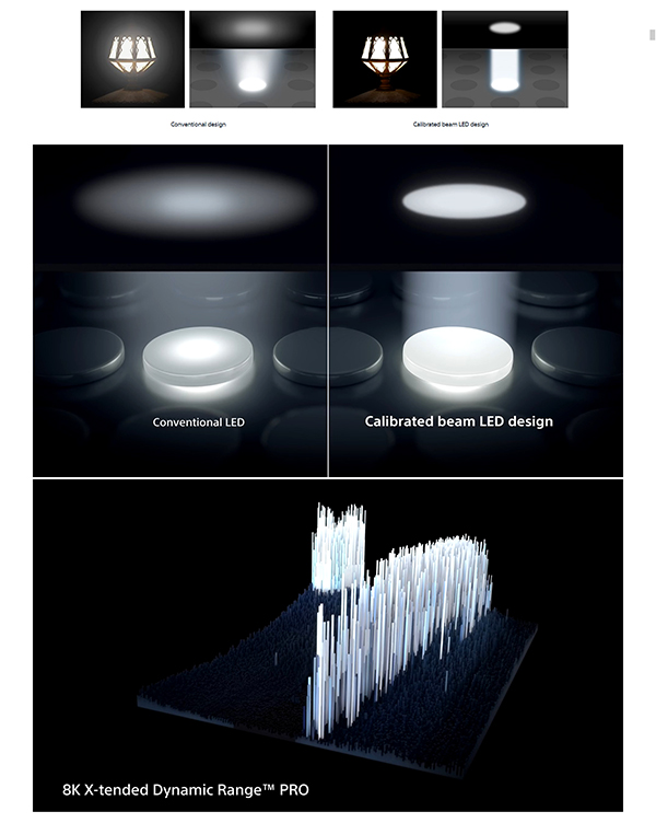 และด้วยพลังของหลอด LED 8K X-tended Dynamic Range™ PRO ที่เป็นตัวขับเม็ดสีให้คม มีคอนทราสท์ที่เข้ม และเหมาะสม จุดที่สว่าง ก็จะสว่างมากขึ้น จุดที่เป็นเงาเข้ม ก็จะเข้มขึ้น จนถึงมืดสนิท ทำให้สีอิ่มขึ้น สวยขึ้นนั่นเอง รวมไปถึง X-Motion การแก้ Movement ที่เราจะดูไม่รู้เรื่องเวลาวัตถุเคลื่อนที่ ก็จะมีการเกลี่ยภาพให้ชัดขึ้นด้วย (ทั้งนี้ขึ้นกับเฟรมเรทของงานภาพต้นฉบับด้วย)