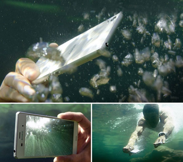 เจ้า Xperia Z3 จาก Sony ตัวนี้ มีสิ่งที่น่าประทับใจที่เป็นข้อดีสำหรับคนที่ชอบทำมือถือตกน้ำ หรือวางใกล้ที่ที่มีฝุ่นเป็นจำนวนมาก ด้วยมาตรฐาน IP65/68 ของ Sony ซึ่งนั่นหมายความว่าทั้งน้ำและฝุ่นจะไม่มีผลต่อการทำงานของสมาร์ทโฟนที่มีประสิทธิภาพและความสวยหรูเครื่องนี้แน่นอน แถมคุณยังสามารถถ่ายภาพ ในขณะที่คุณกำลังว่ายน้ำอยู่ได้นานถึง 30 นาทีด้วยกล้องจาก Xperia Z3 ตัวนี้ กันน้ำได้ลึกถึง 1.5 เมตรเลยทีเดียวเดียว แต่อย่าลืมปิดฝาครอบทั้งหมดของพอร์ตให้สนิทด้วยนะครับ