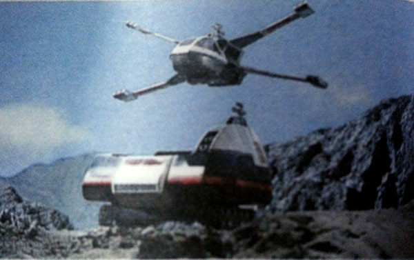เจ็ทไกออส - ยานรบของสปิลบัน เมื่อกางปีกทั้ง 4 จะมีลักษณะคล้ายกับ X Wing Fighter ในหนัง Star Wars