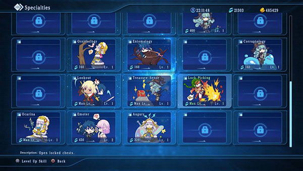 คำสั่งที่ปลดลอคได้จากเมนู Skill Specialties ทำให้สามารถสร้างไอเทมใช้งานเจ๋งอย่าง Blueberry Potion (ฟื้น HP70%) หรือสร้างไอเทมพิเศษสำหรับส่งเควสต่างๆ หรือทักษะการตีบวกเอาไอเทมต่างๆมาเพิ่มพลังให้อุปกรณืสวมใส่ สามรถเรียนรู้ทักษะการสร้างของได้จากการทำเควสที่ Welth Laboratary ที่เมือง Myiddok