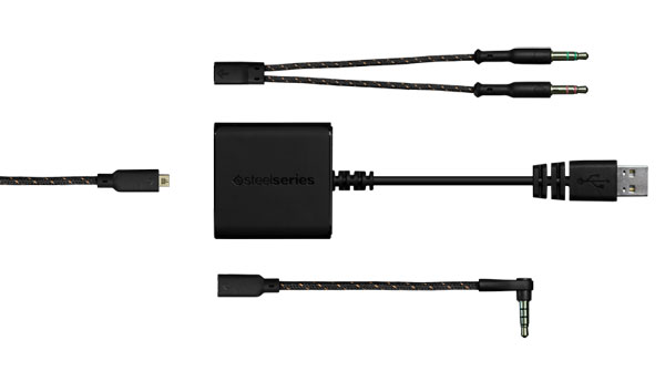 โดยในรุ่น 9H ทาง SteelSeries ยังแถมตัว USB Soundcard เวอร์ชั่นล่าสุดมาให้ในกล่องด้วย ซึ่งตัว Soundcard ตัวนี้ เป็นตัวเดียวกับ Soundcard ในตัว Elite เพื่อมาช่วยทำให้เจ้าตัว 9H ตัวนี้ สามารถใช้งานระบบเสียง Dolby Digital ได้ ส่วนตัวสายสัญญาณของตัว 9H นี้ จะแบ่งแยกเป็นหัวสายที่ต่อเข้ากับ USB ได้โดยตรง และสามารถแยกเสียบเป็นแบบ Analog 3.5 mm ได้อีกด้วย