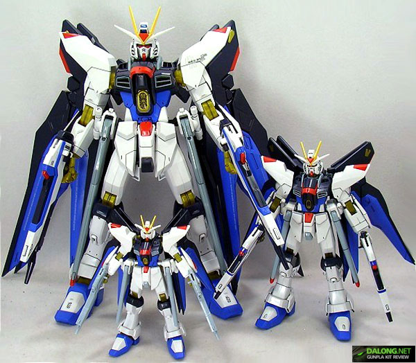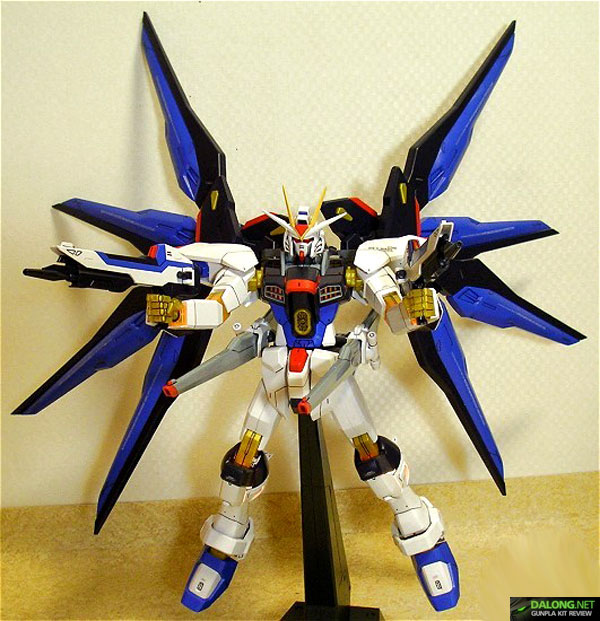 สุดยอดโมบิลสูทกันดั้มจากภาค Seed Destiny รหัสเครื่อง ZGMF-X20A Strike Freedom Gundam บังคับโดย คิระ ยามาโตะ นักบินผู้มีพลังของ โคออดิเนเตอร์ ที่สามารถเร่งพลังกายและสมองให้สูงล้ำเหนือมนุษย์ทำให้สามารถบังคับโมบิลสูทได้อย่าน่าทึ่ง ตัวเครื่องรุ่นนี้พัฒนามาจากหุ่นรุ่น Freedom ที่มีจุดเด่นเรื่องความคล่อยตัว และถูกทำลายไปในการต่ดสู้กับ Impulse Gundam หลังจากนั้นได้ถูกพัฒนาและติดตั้งระบบ DRAGOON system ขึ้นมาใหม่ ทำให้สามารถสังการฟันเนลทั้ง 8 ชิ้นที่ติดมากับปีก ให้เคลื่อนที่ไปโจมตีเป้าหมายได้อย่างใจคิด นอกจากนั้นยังมีอาวุธที่เน้นการโจมตีระยะไกลที่มีพลังทำลายล้างสูง ด้วยปืนบีมแคนนอน ที่สามารถประกอบรวมกันเปนบีมไรเฟิลเพื่อยิงระยะไกลแบบหวังผล ส่วนการโจมตีระยะใกล้ยังมีบีมเซเบอร์คู่ที่ติดตั้งไว้ที่ข้างเอวทั้ง2ข้างไว้ใช้งาน
